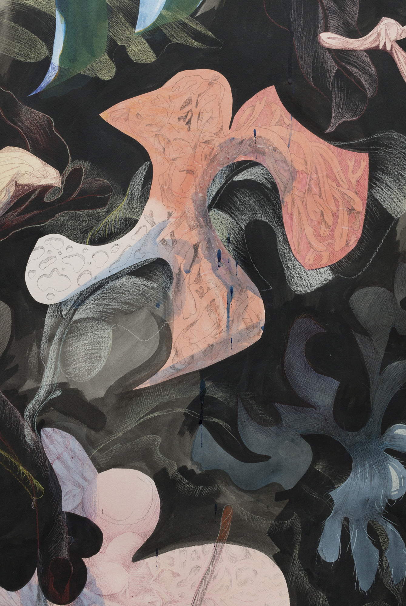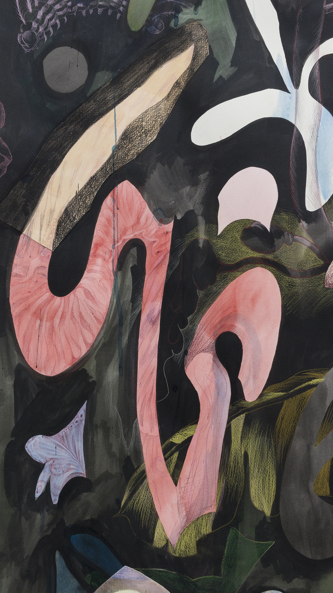 ink, watercolour, flashe, graphite, pencil crayon on paper